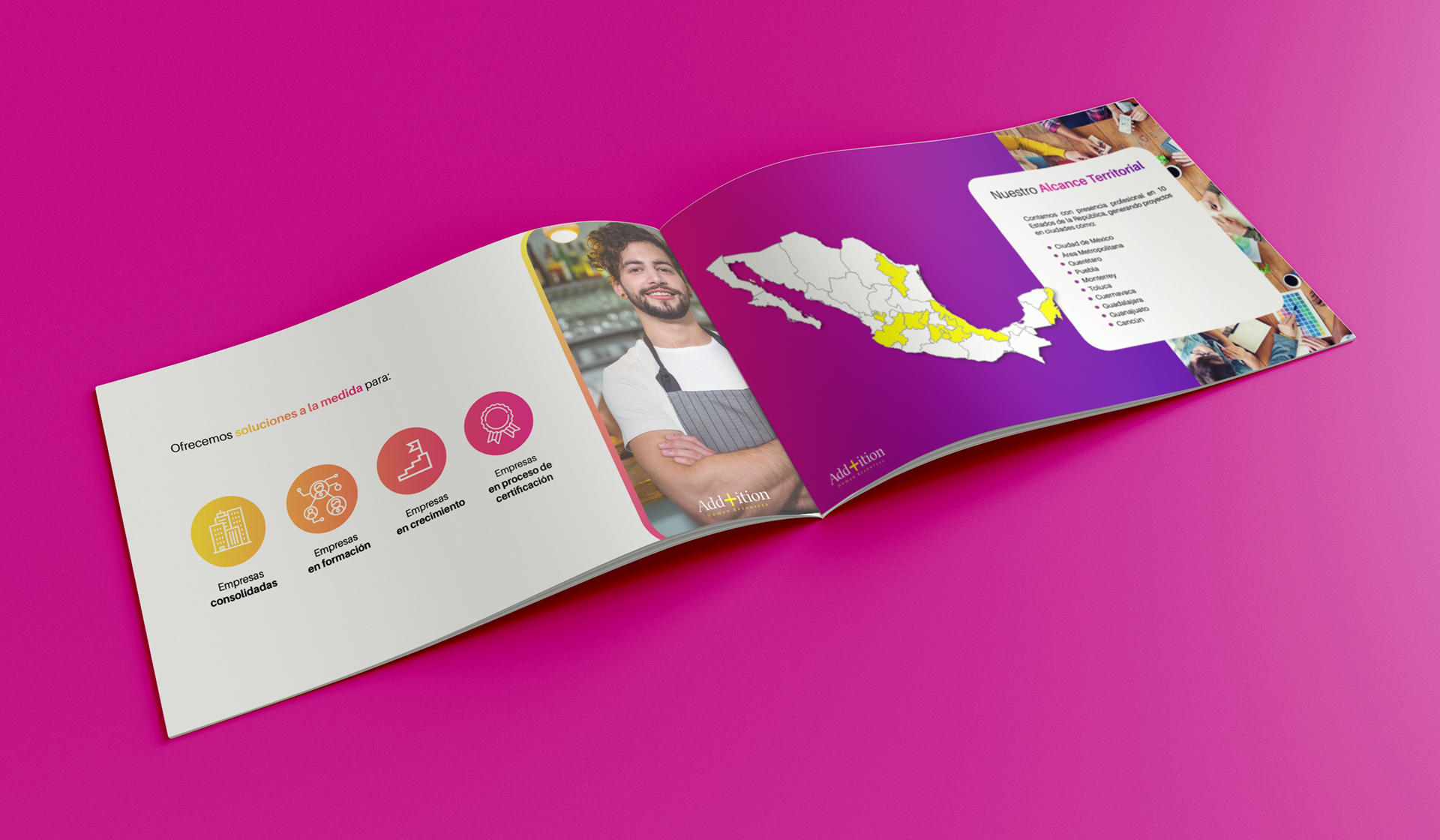 Addition HR is a Mexican consultancy specializing in Human Resources with a strong focus on diversity and inclusion. Although the company already had an established logo, my role was to give the brand a modern refresh—developing a professional, cohesive visual identity that resonates with corporate audiences while staying true to their inclusive values.