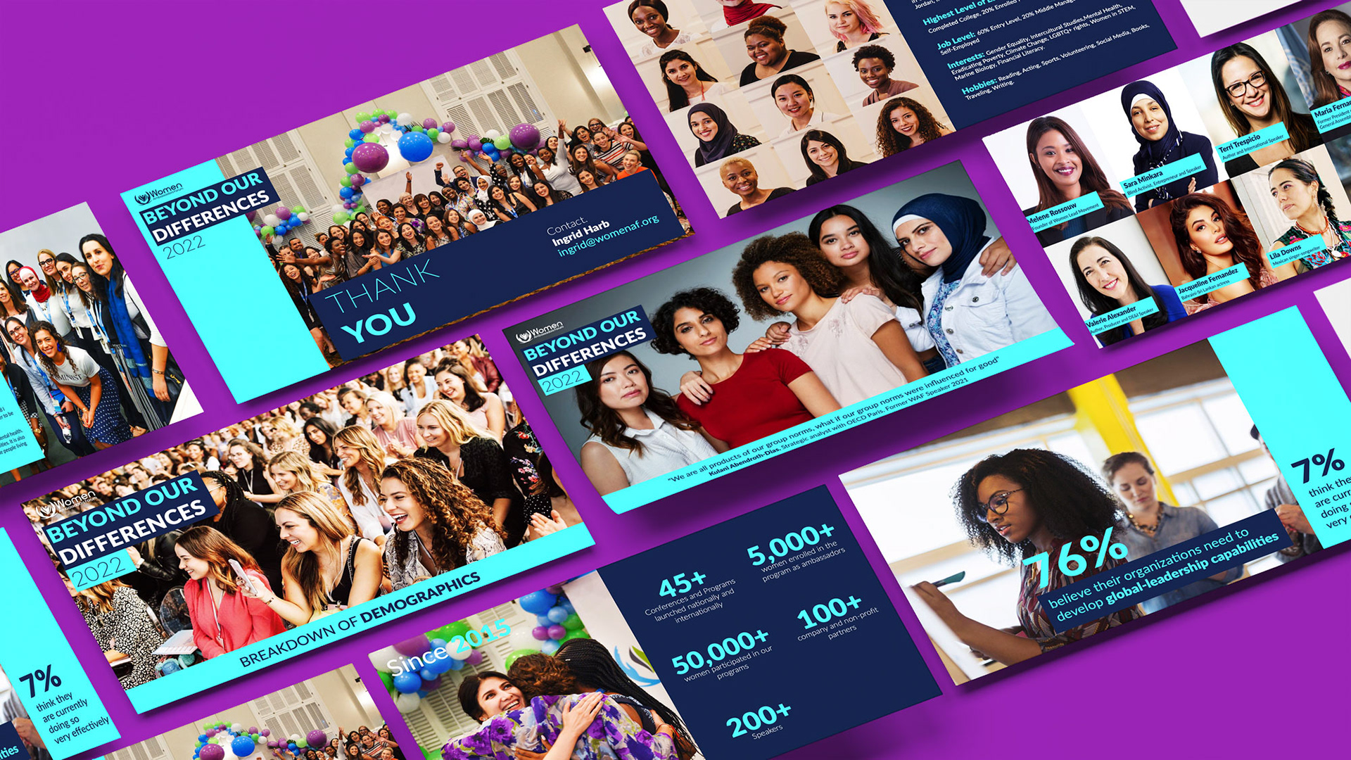 Through a modern color palette, inclusive photography, and a clean editorial layout, the design aimed to reflect both strength and empathy, connecting over 50,000 women across more than 130 countries. Each composition balanced emotion and clarity, ensuring that complex data and global impact were communicated in a visually human, inspiring way.