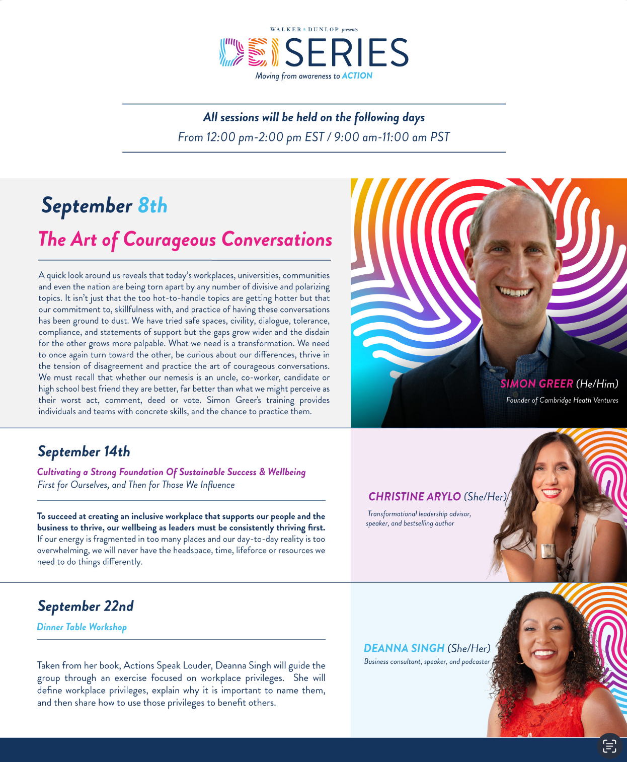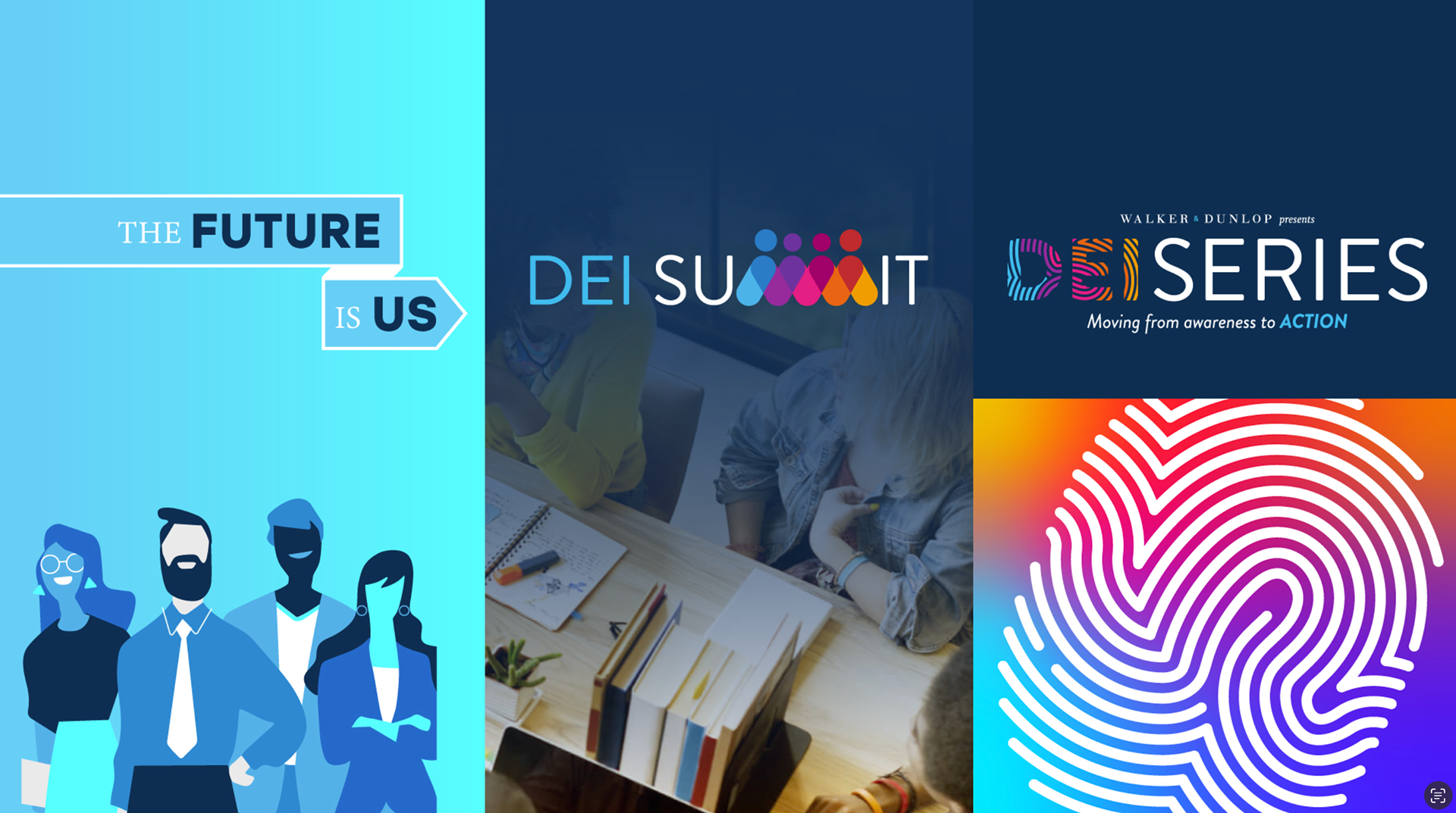 For three consecutive years, I served as Art Director for Walker & Dunlop’s DEI Series, a flagship initiative created to help leaders move “from awareness to action.” My role involved crafting a full visual identity that could evolve annually while keeping its mission at the center: amplifying diverse voices, igniting courageous conversations, and inspiring organizations to build more inclusive cultures. The challenge was to design a system bold enough to stand out inside the corporate world —yet human, emotional, and unmistakably tied to the DEI purpose.