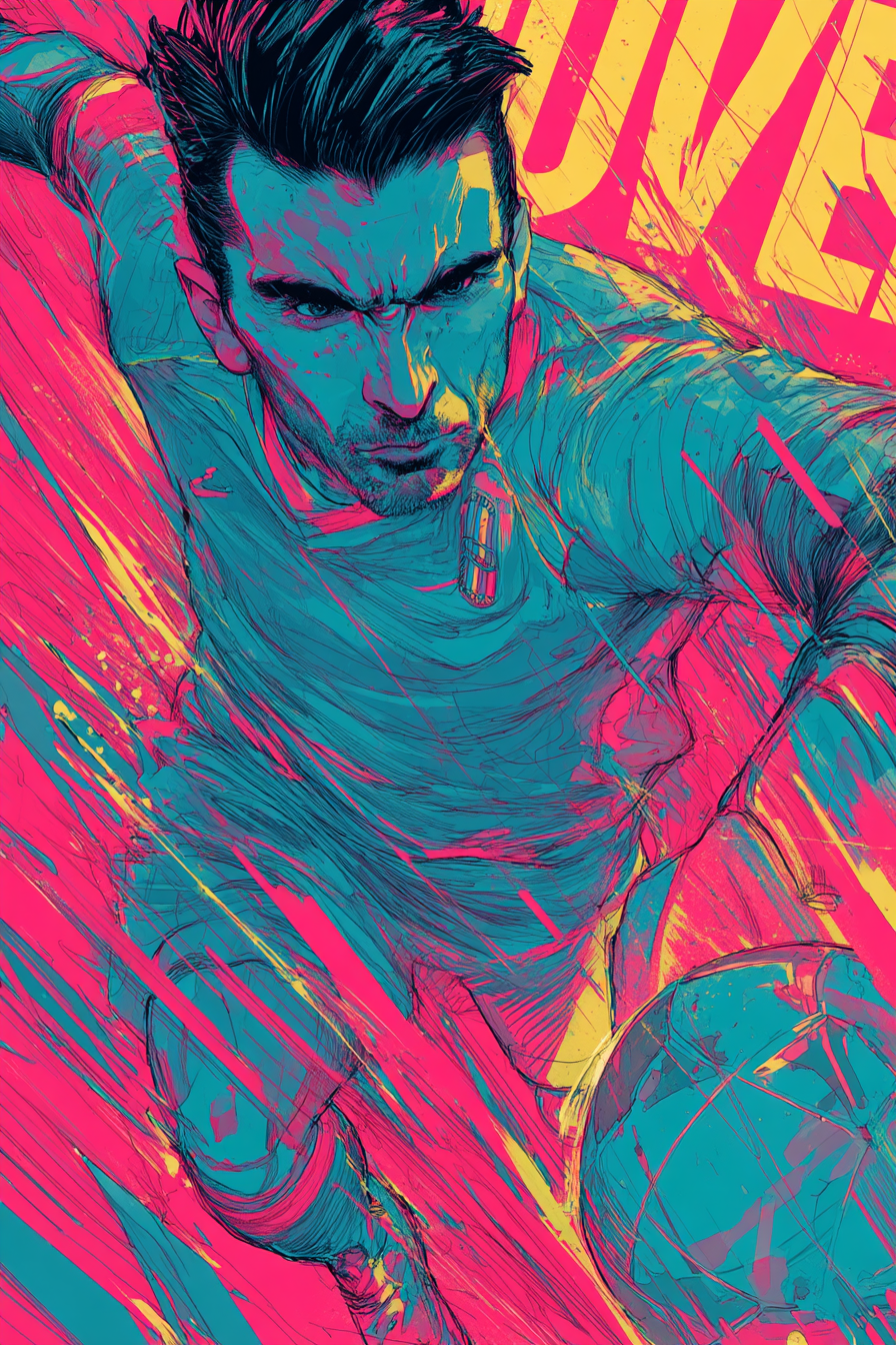 This personal project was created as an exercise in visual experimentation, combining AI-generated imagery with bold editorial design. Inspired by the collectible card format from EA Sports FIFA, I explored how color, movement, and stylization could elevate player portraits into striking, poster-like visuals. This piece allowed me to push my creative direction and Midjourney skills into a more expressive, pop-art-inspired aesthetic—reimagining how digital collectibles could look in a modern sports campaign.