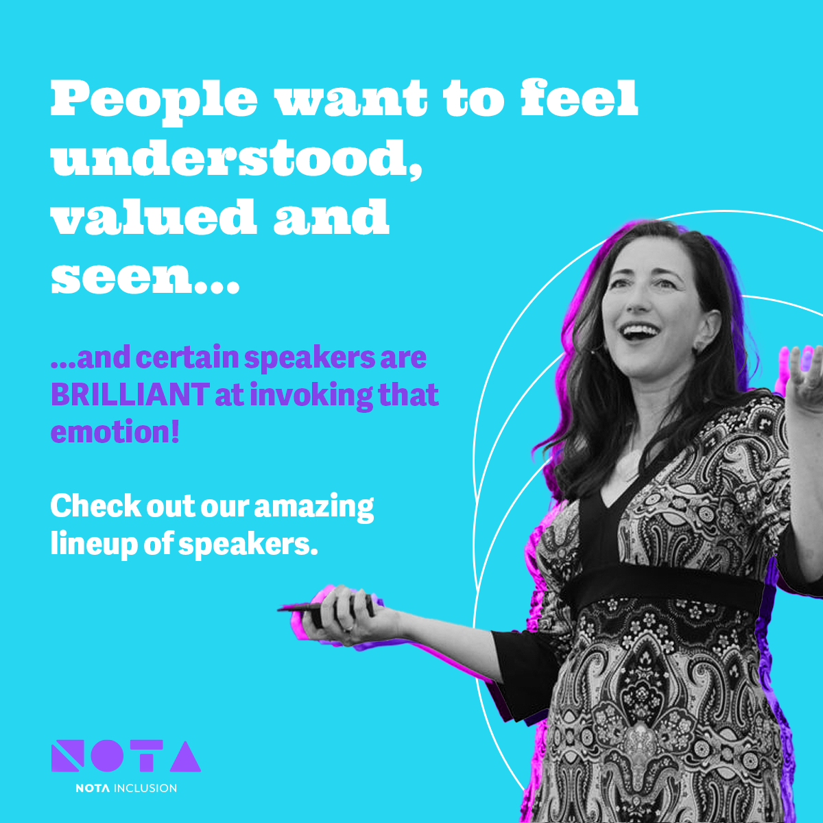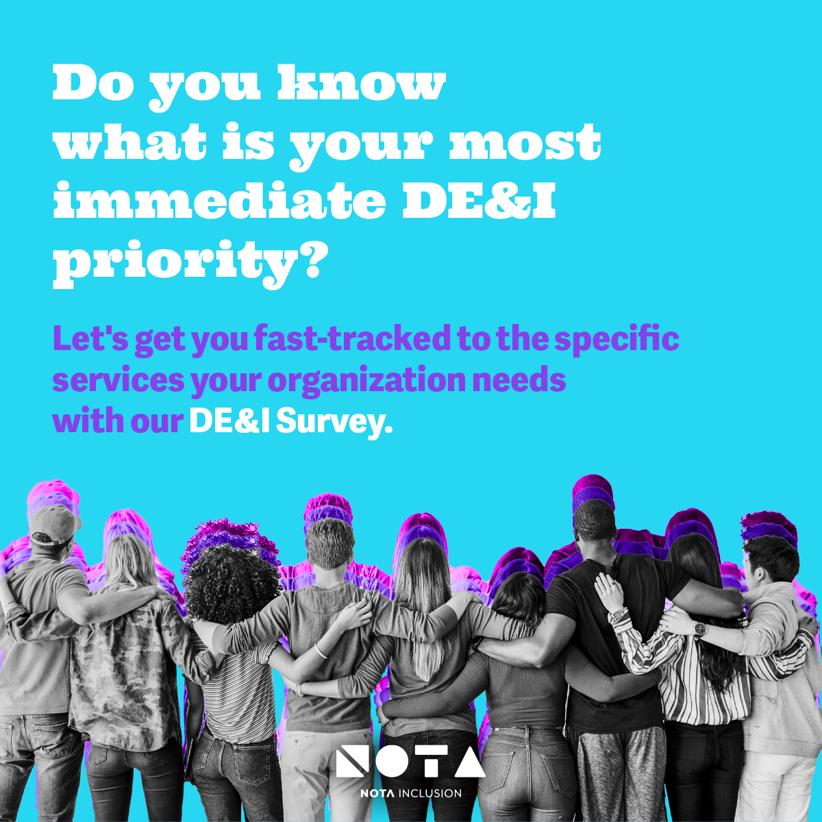 This creative direction helped position NOTA as a fresh, energetic and human-centered presence in the DEI landscape, differentiating the brand in an industry often dominated by corporate-neutral visuals. The system scaled seamlessly across formats—speaker announcements, surveys, campaigns, digital launches, and Eventbrite promotional materials—building a visual world that audiences could immediately associate with NOTA’s mission.